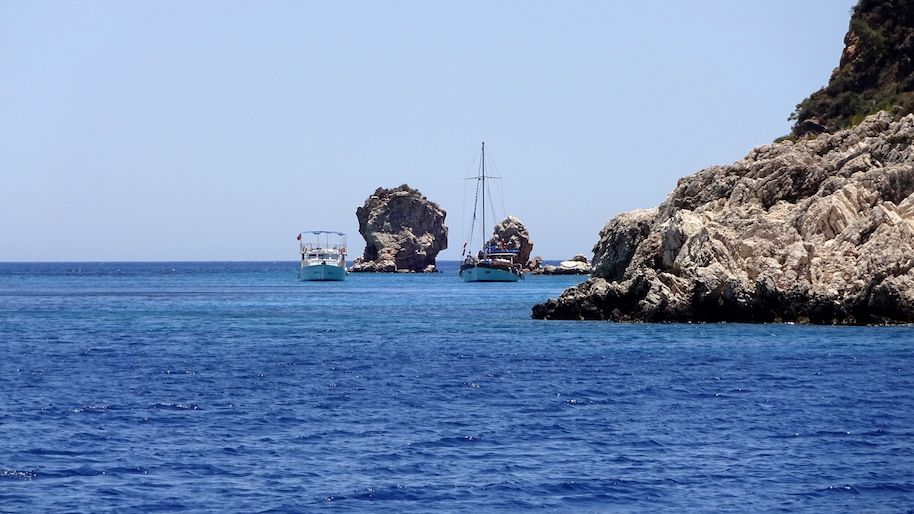 На северо-востоке есть прекрасный залив Гёккая с множеством мест для якорей. Проплыв 2 мили оттуда на лодке вы можете посетить древний ликийский город Мира, а ныне турецкий Демре, где находится церковь Святого Николая.
